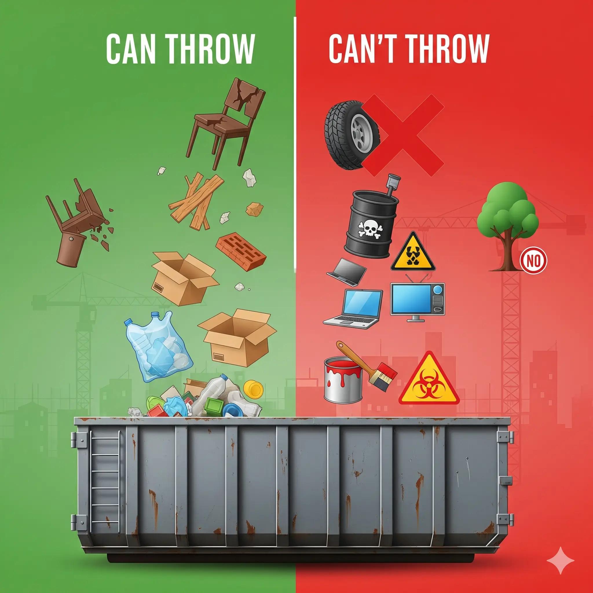 Here’s a clear breakdown of the top 10 categories of items you can and can’t put in a dumpster, so you can avoid surprises and dispose of them responsibly.